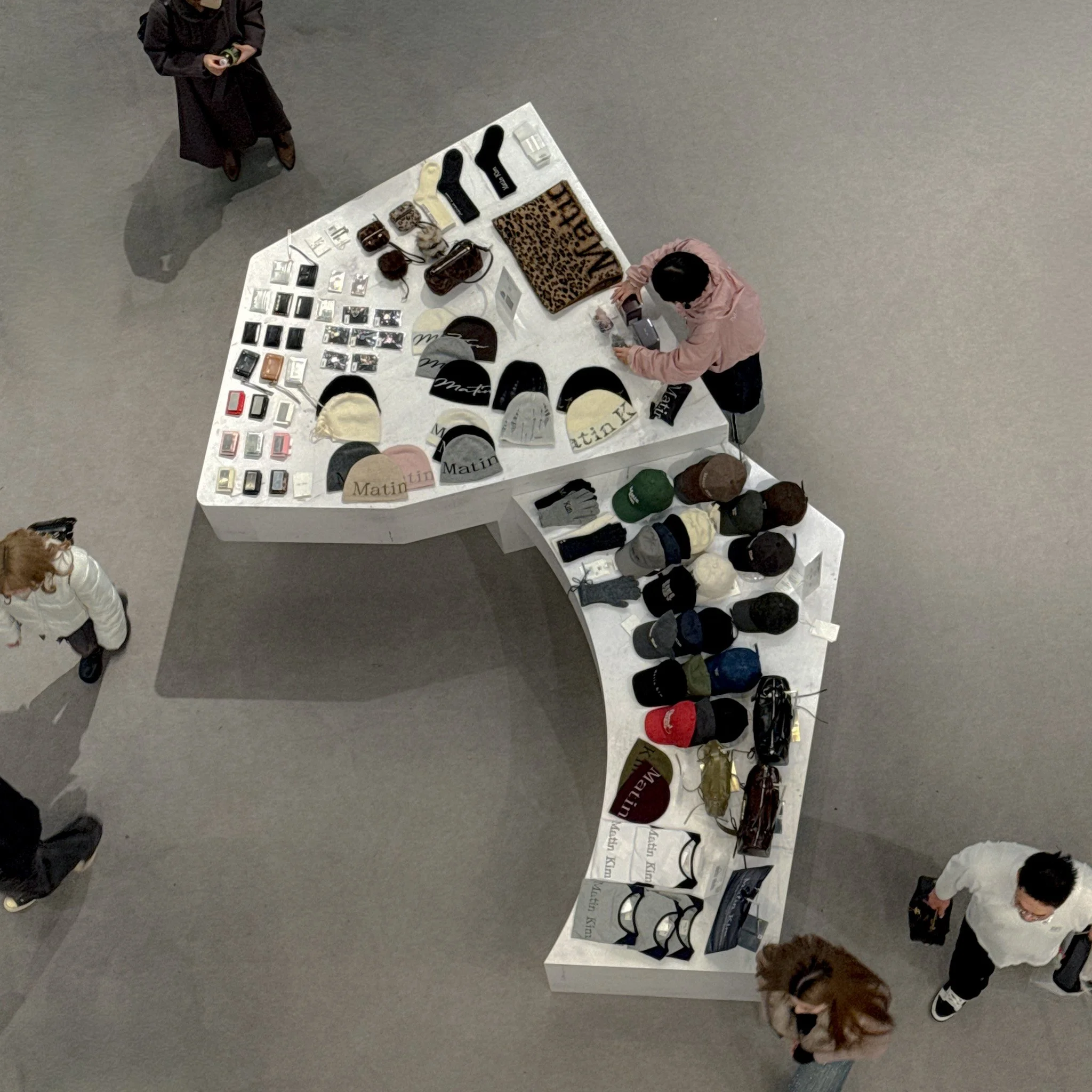 本プロジェクトでは「素材の態度」に焦点を当てました。特別な仕上げや高価な素材に頼るのではなく、誰もがホームセンターで手に入れられる素材の物性と構造的な配置のみで、空間の密度を形成することを試みました。ガルバリウム鋼板を円筒状に巻き、自立するオブジェとして設置し、コンクリートとレイヤー状に構成することで、金属の冷たさとコンクリートの粗い質感が対比されるようにしています。工業的で無機質な素材の組み合わせは、かえってジュエリーの繊細さと精度をより一層際立たせます。また、施工期間が短いポップアップの特性を踏まえ、構造そのものがひとつのアートピースとして機能するよう設計しました。